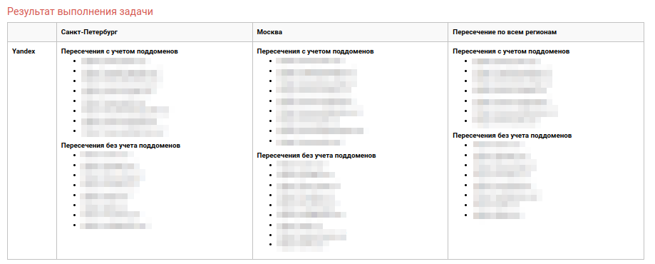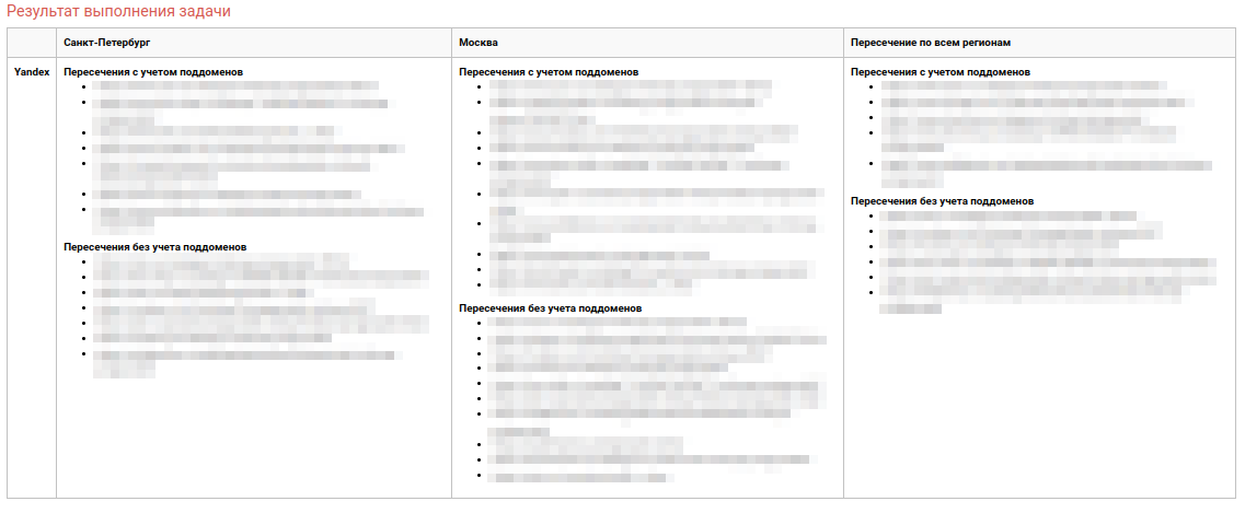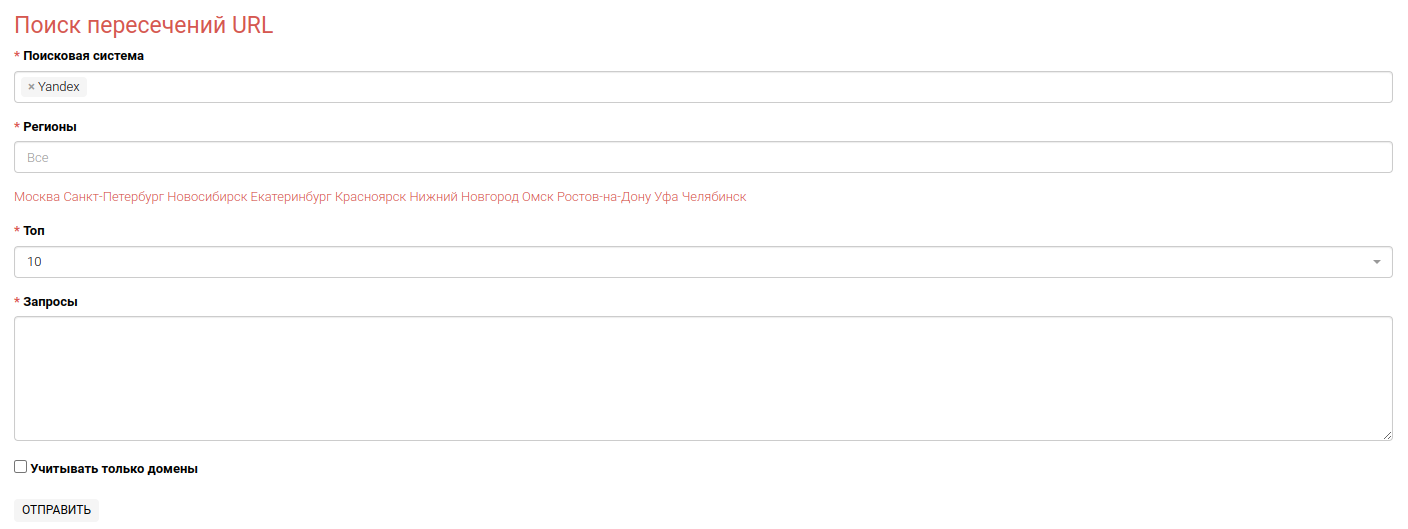 С помощью этого инструмента можно быстро выгрузить и анализировать ТОП поисковой выдачи по запросу, посмотреть пересечения документов и доменов по запросам и нескольким регионам.