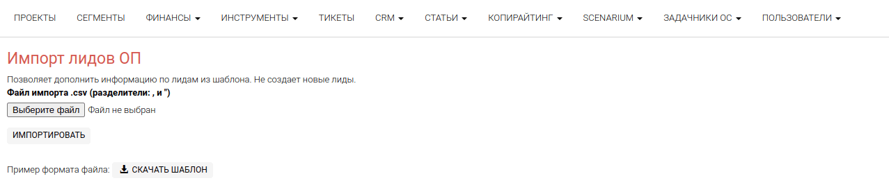 Для добавления большого количества лидов из других CRM, есть инструмент импорта данных в формате .csv