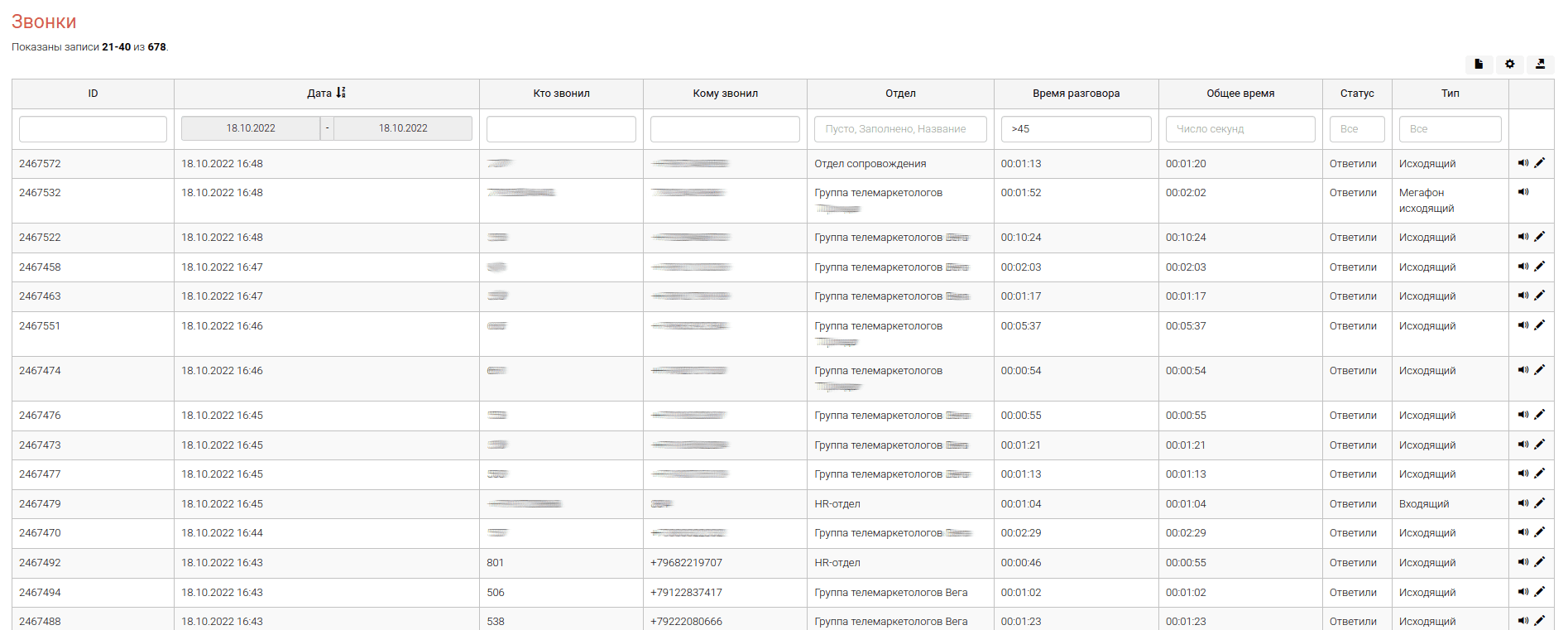 После настройки IP-телефонии, пользователь может видеть все входящие и исходящие звонки, которые проходят через компанию.