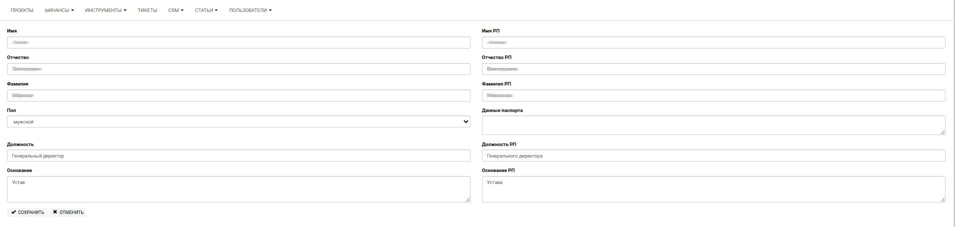 Имя РП, Отчество РП, Фамилия РП, Данные паспорта, Должность РП, Основание РП