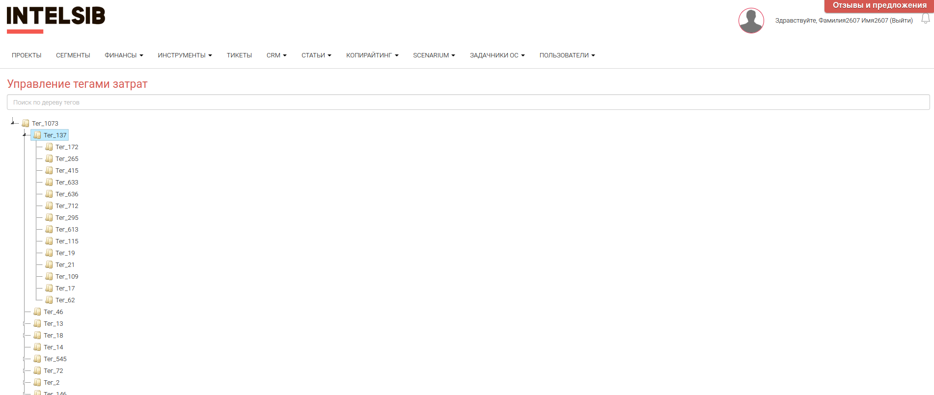 Для удобства, модуль оснащен Управлением тегами затрат. При помощи него можно: