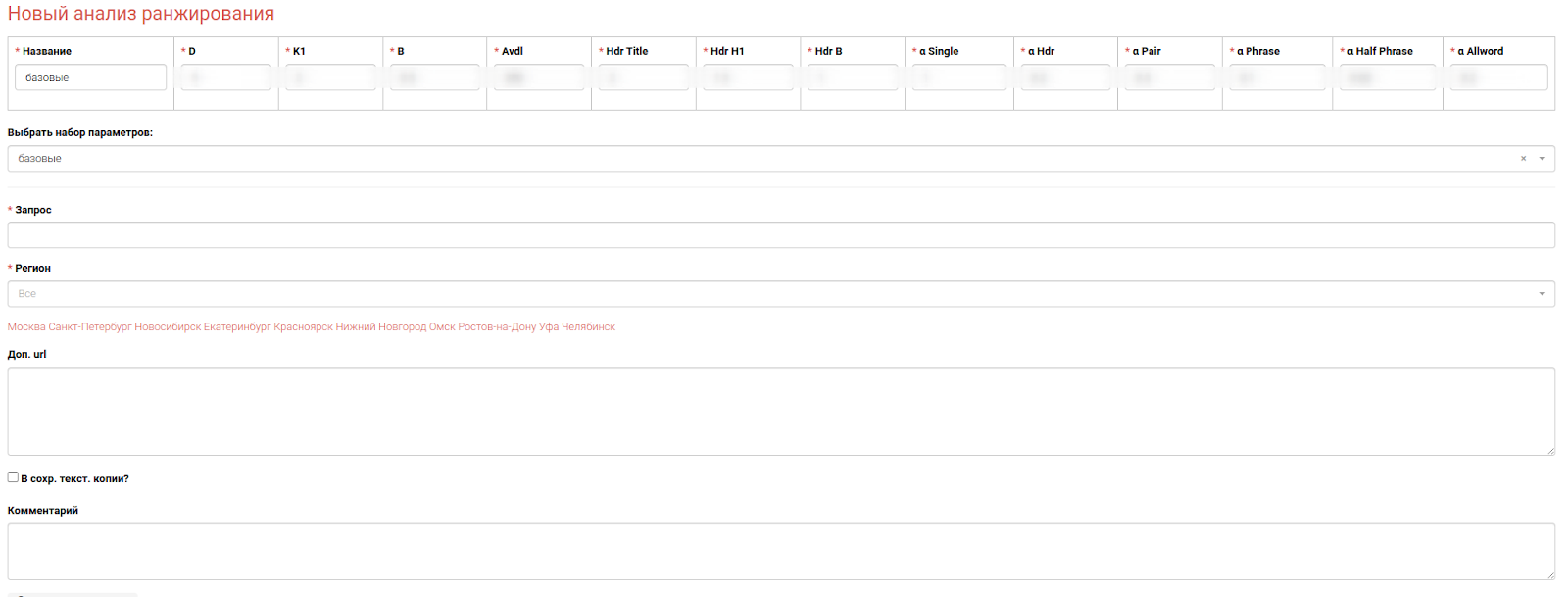 Регион - указывается регион, по которому будут собраны страницы.
