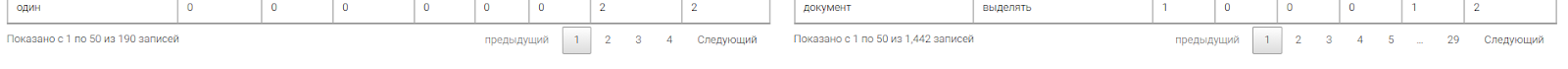 В таблице доступна настройка вывода количества строк, а также пагинация по страницам.