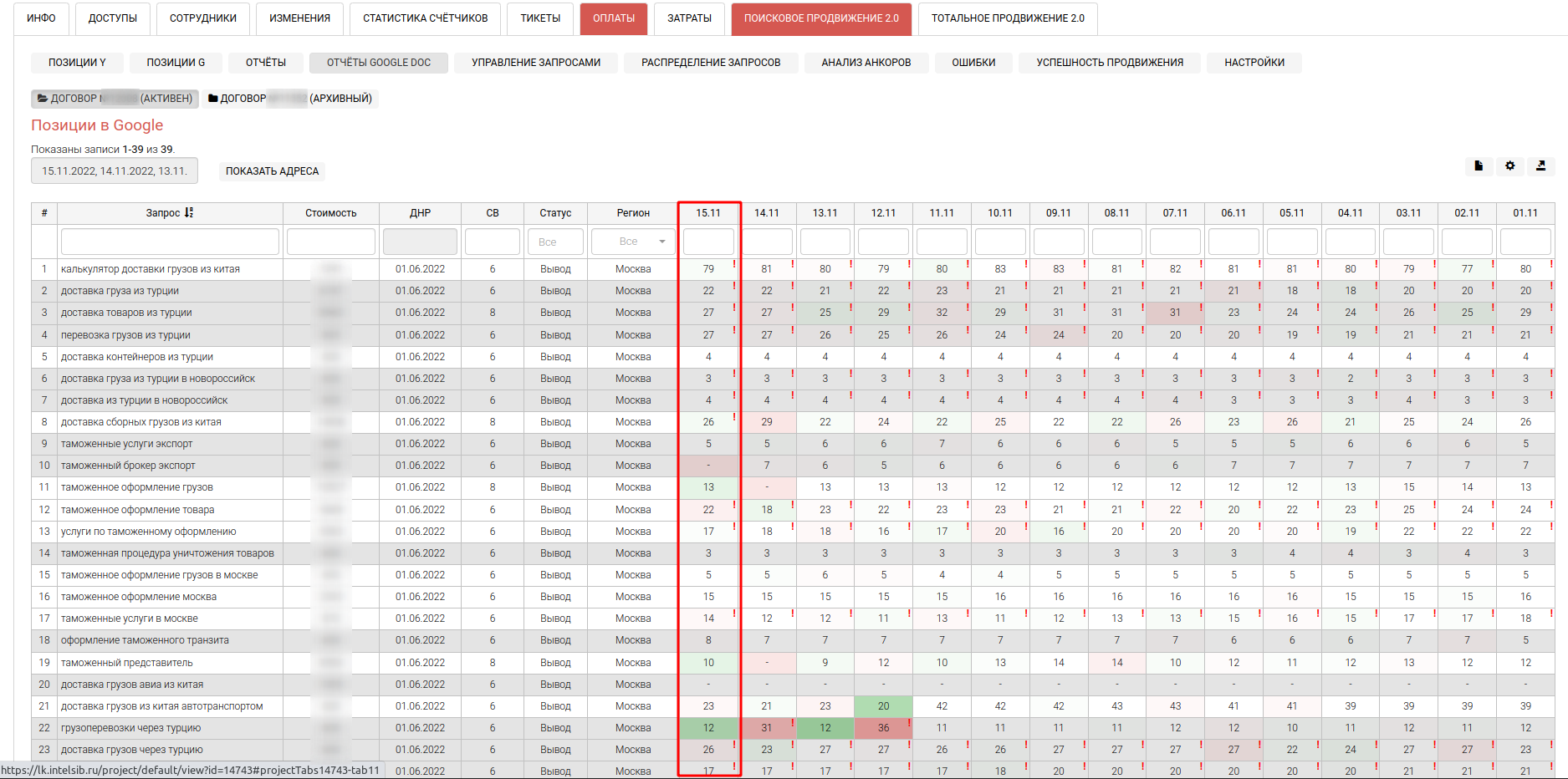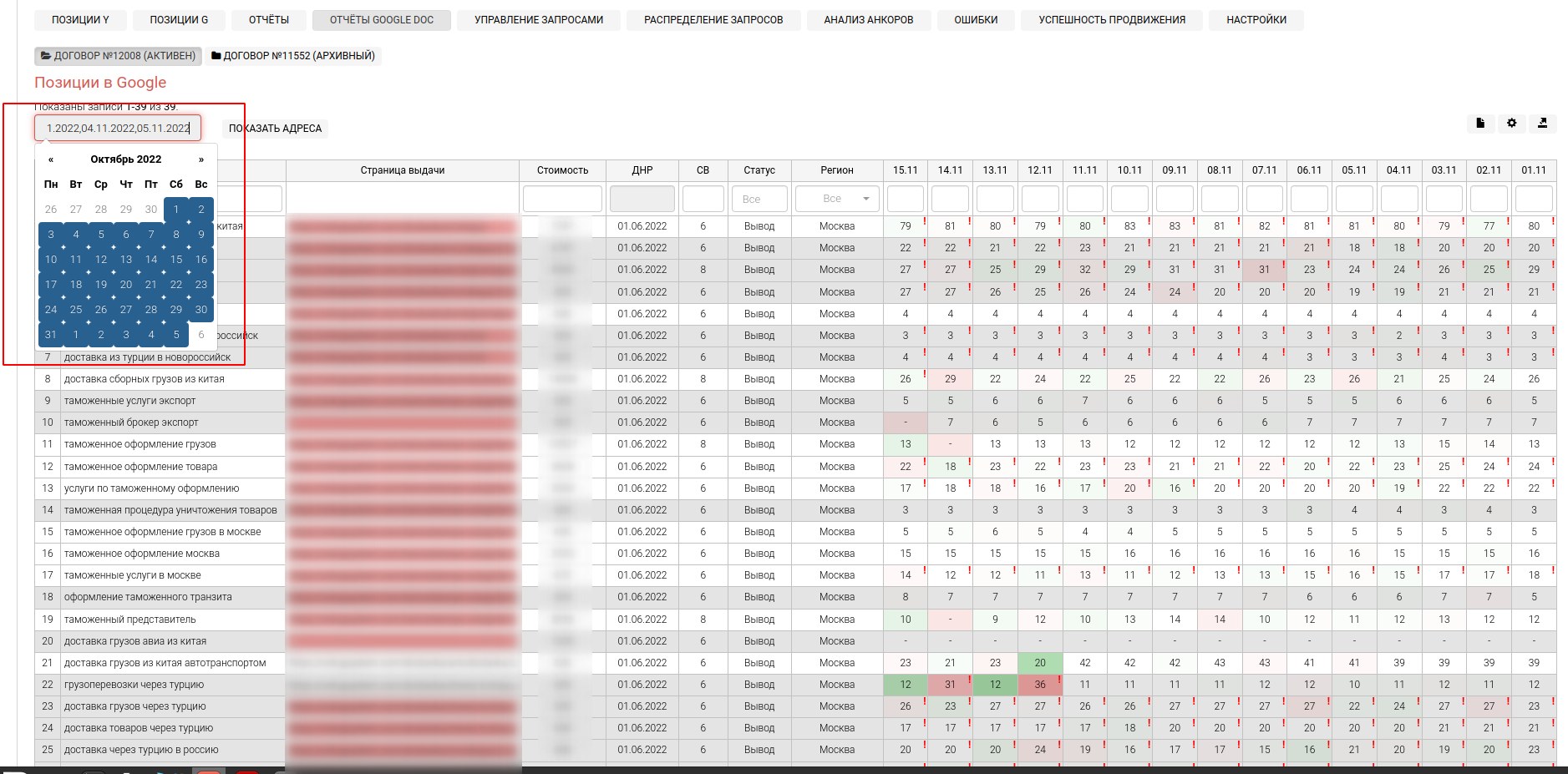 Проверка позиций сайта в Google регулярная