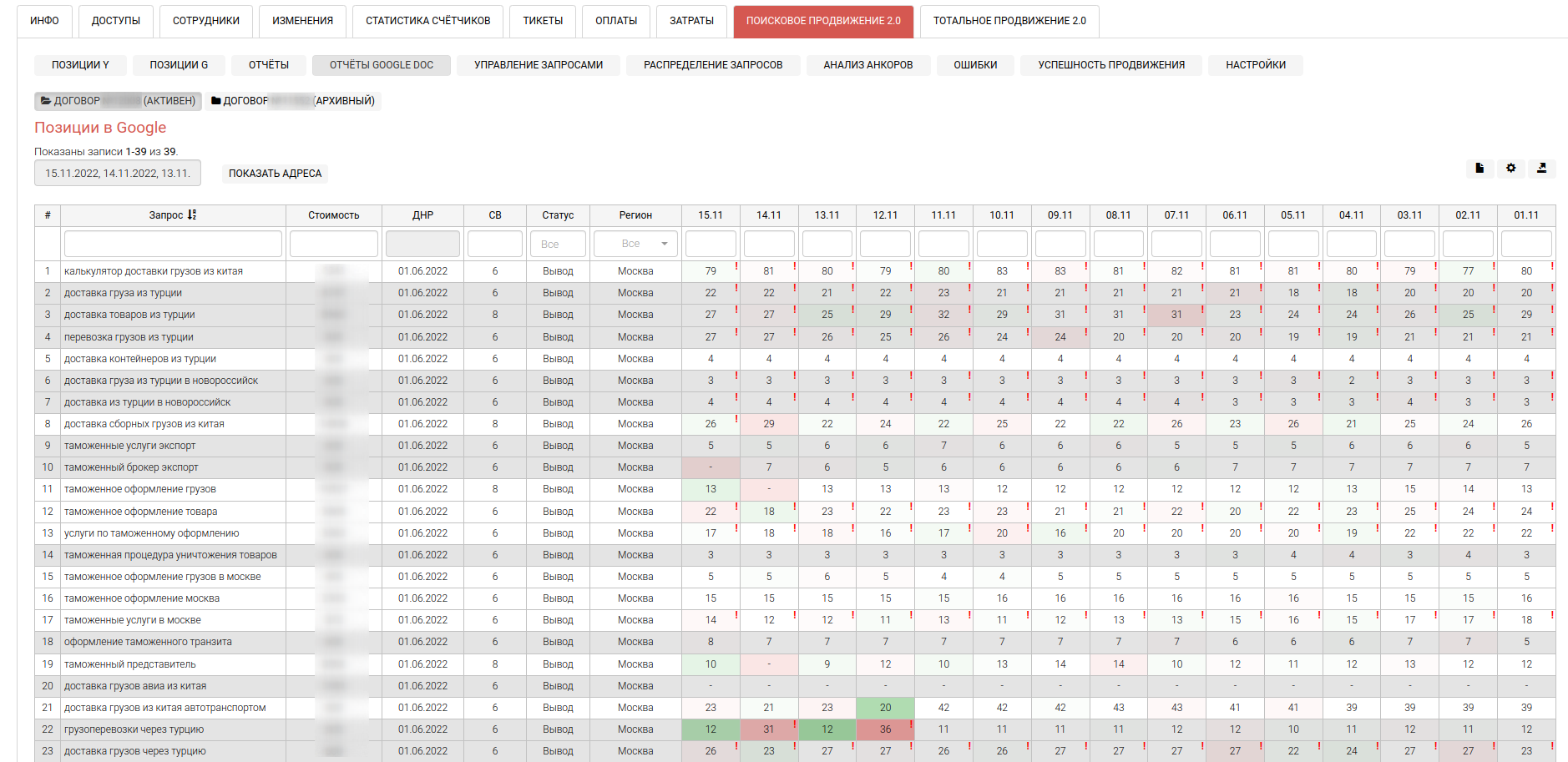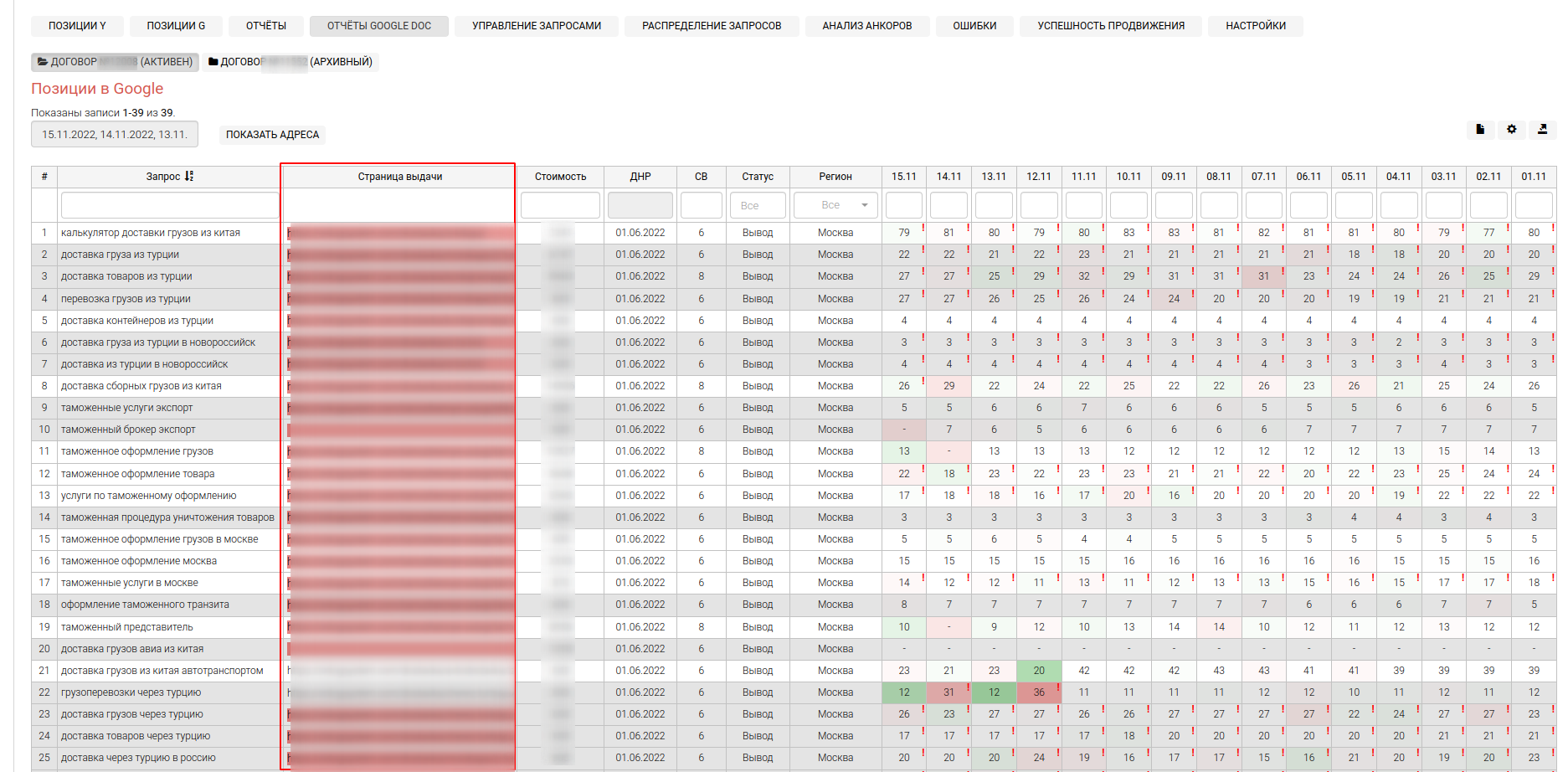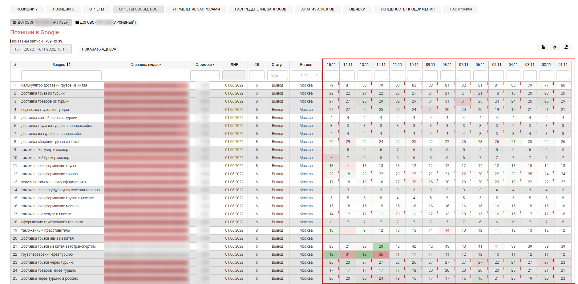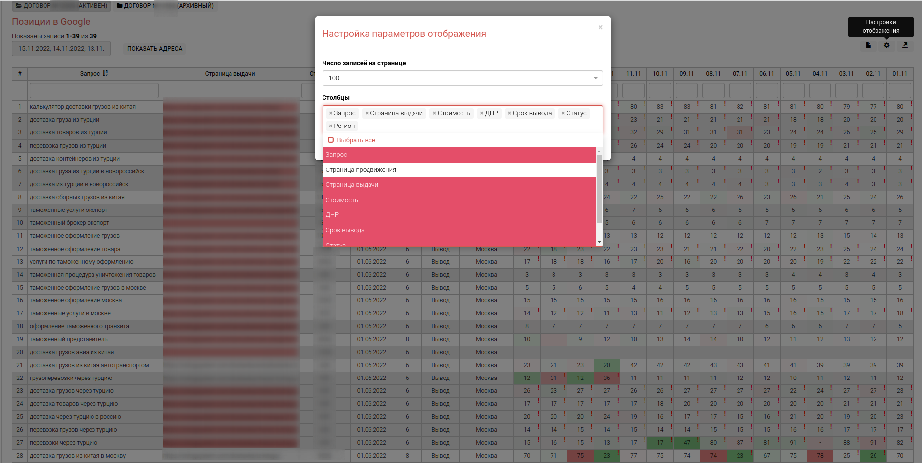 Инструмент осуществляет регулярный съем позиций органического поиска Google для заданной поисковой фразы по конкретному региону.