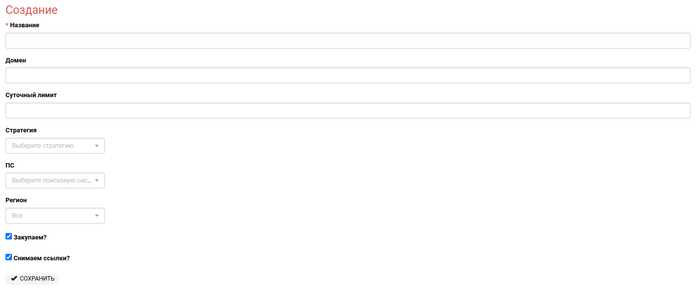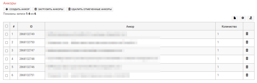Инструмент позволяет задать список страниц и анкоров, которые будут переданы вебмастеру для размещения на странице.