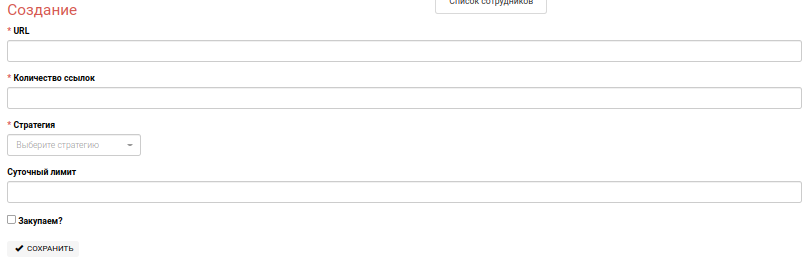На странице URL инструмент позволяет добавить тексты размещаемых ссылок. Количество текстов, как правило, равняется количеству закупаемых ссылок.