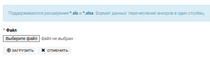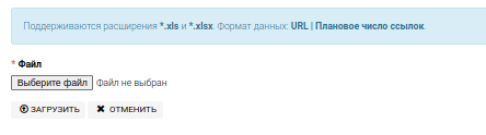 Загрузить URL - добавление целого списка URL страниц. Файл формата .xls или .xlsx следующего вида: