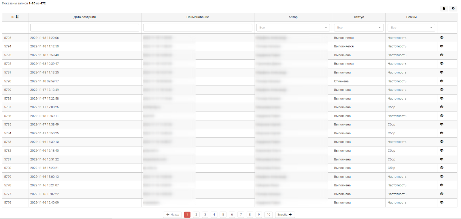 Данный инструмент позволяет каталогизировать задачи проведенные в рамках работу инструмента “Сбор поисковых запросов через wordstat”. Для этого настроен функционал: